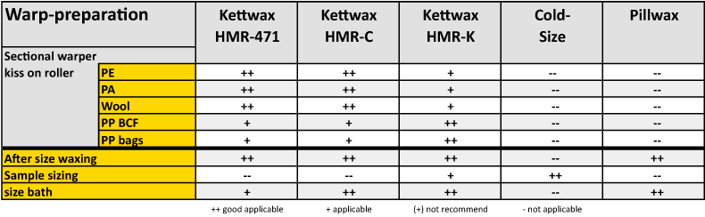 * Sizing chart warp preparation