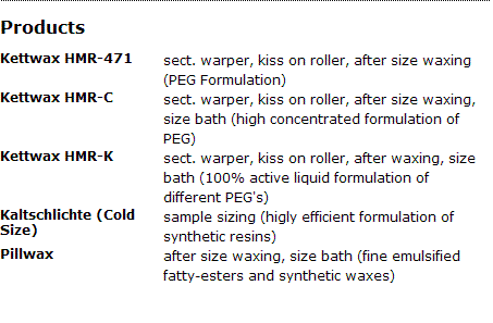 Size bath, -sample sizing, after size waxing, sectional warper, -Kiss on roller